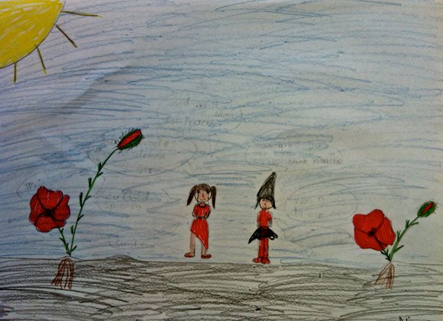 Kinder in voller Konzentration und mit Lampenfieber ihr Märchen vor,